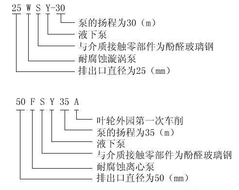 三、FSY型、WSY型立式玻璃鋼液下泵型號意義: